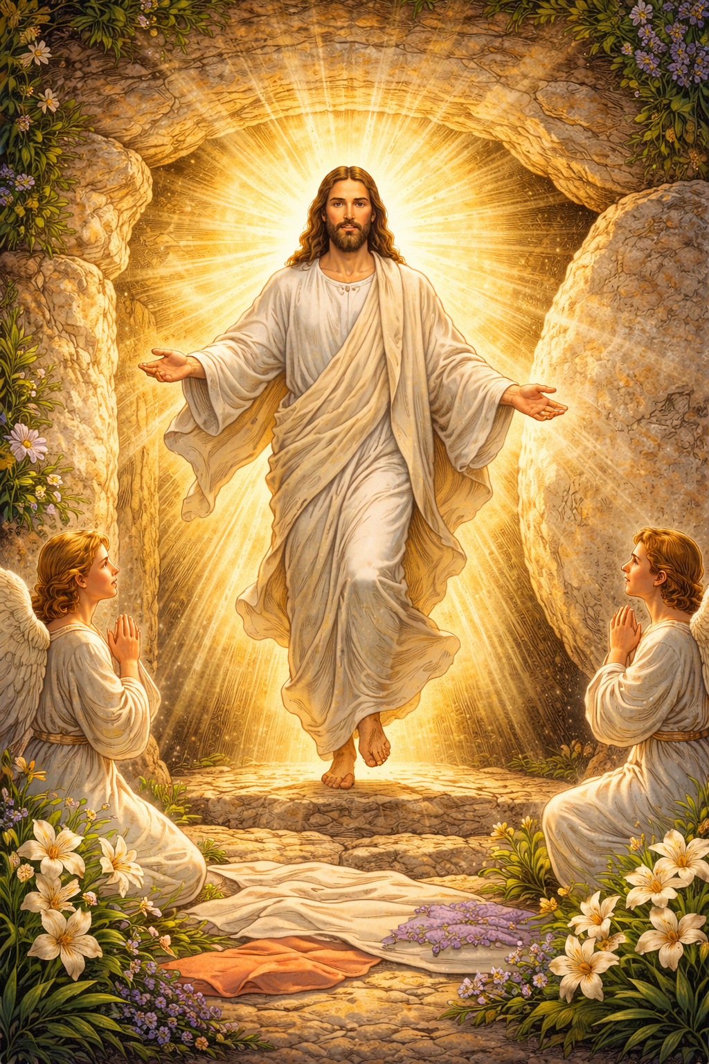 The Gospel from John (John 20:1–9) tells the story of the empty tomb. Early in the morning, Mary Magdalene finds the stone rolled away. Peter and the beloved disciple run to the tomb and see that it is empty, just as Jesus had foretold. Though they do not yet fully understand, they begin to believe. The empty tomb is the first sign that Jesus has risen and that death no longer has the final word.