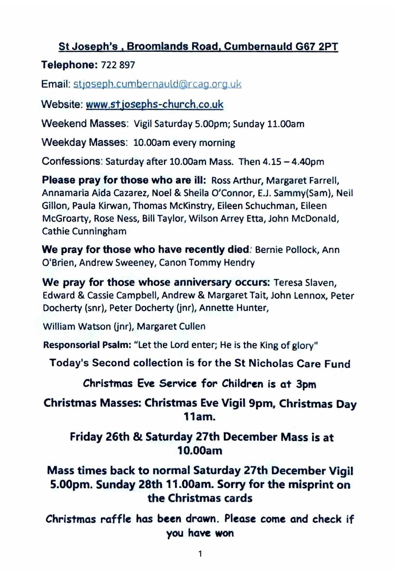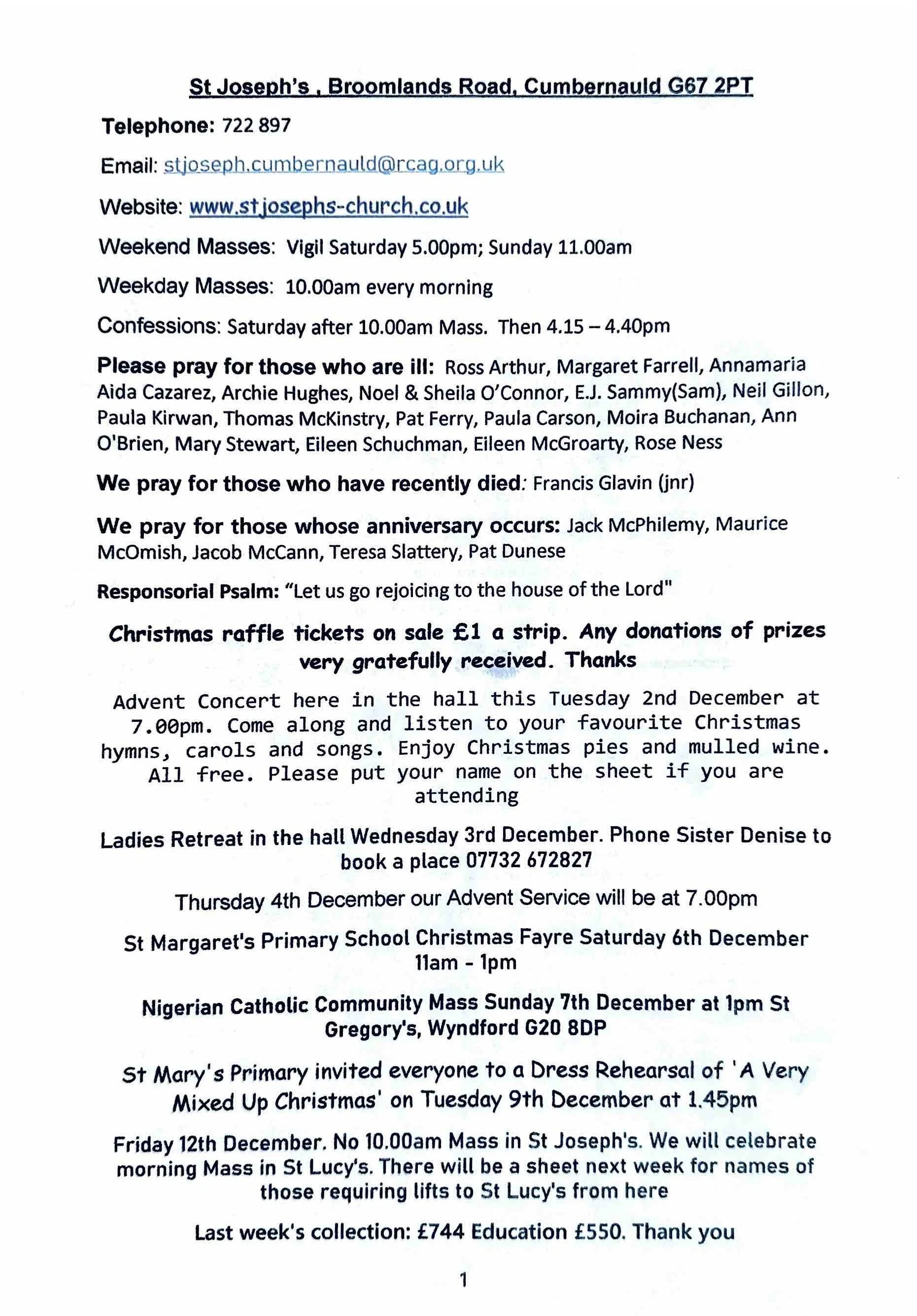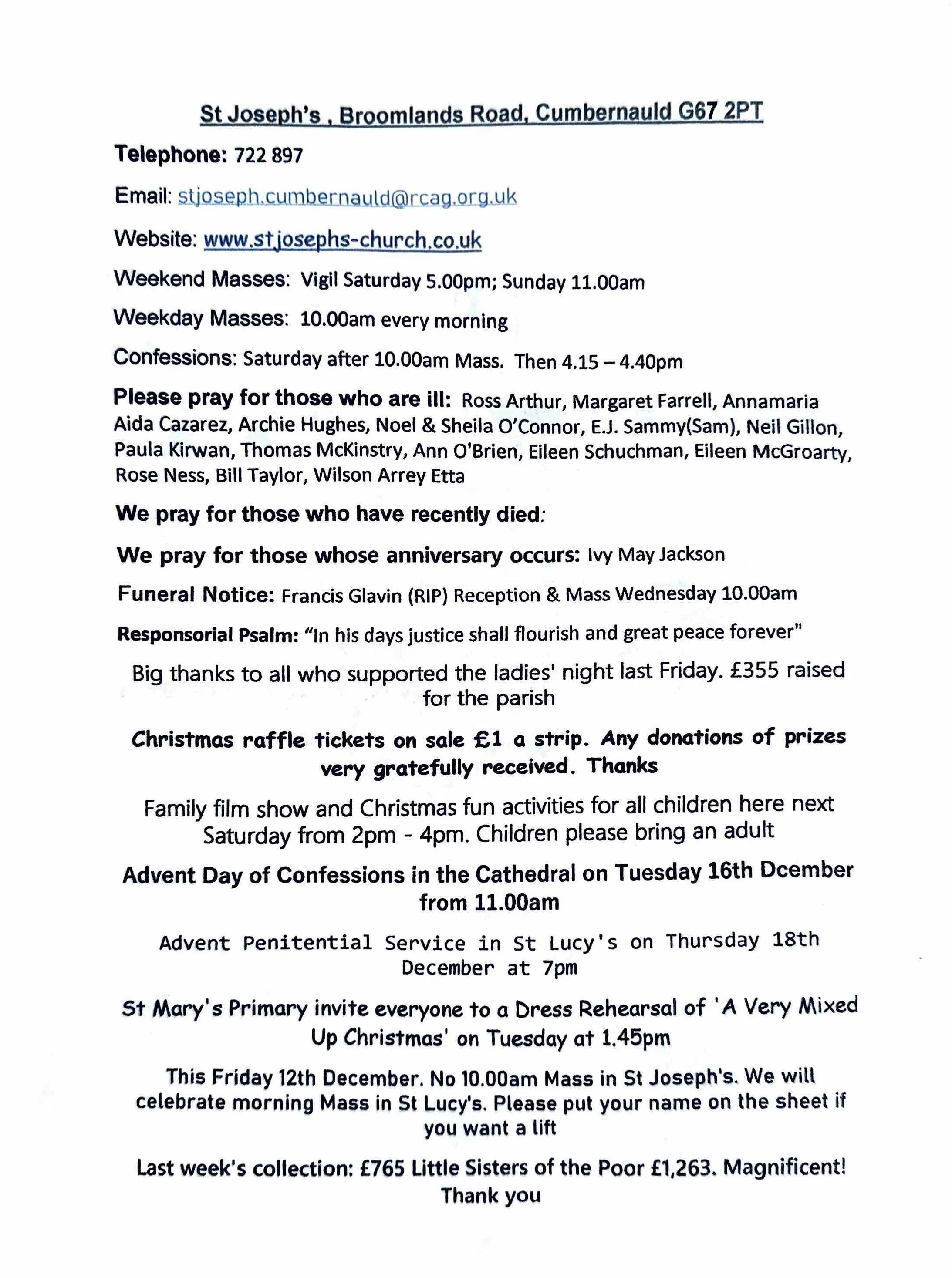 Please note there will be evening Mass in the church on Tuesday and Thursday at 7pm